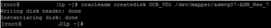 [root@node1 /]# oracleasm createdisk fra1 /dev/mapper/mpatha